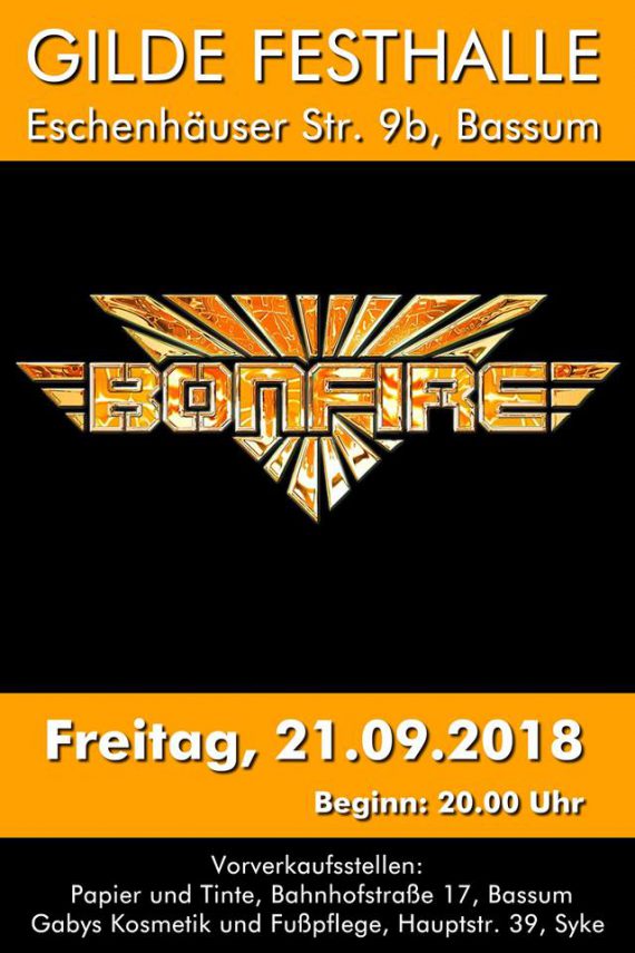 Veröffentlicht am 7. September 2018 auf 640 × 960 in Konzert: BONFIRE gastiert in Bassum!