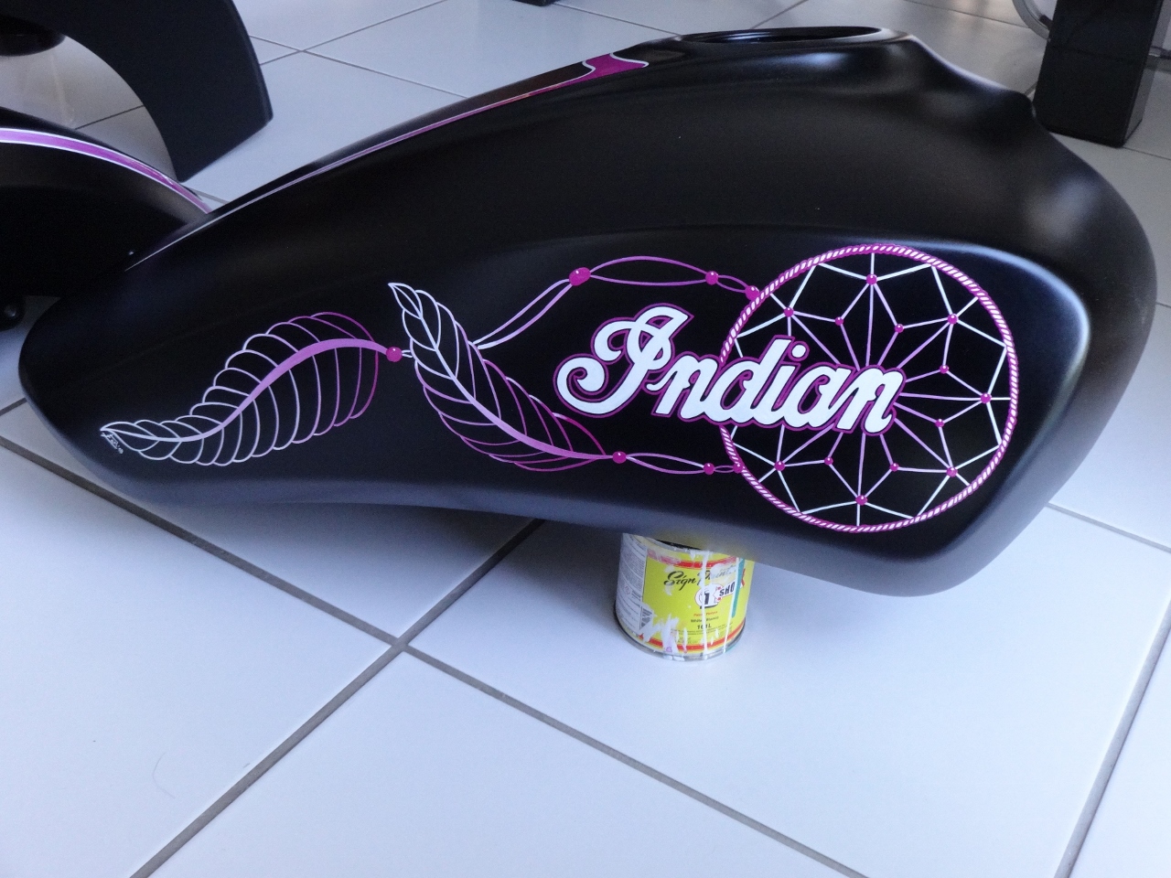 Veröffentlicht am 28. August 2024 auf 1280 × 960 in Kreatives: Pinstriping by Country-Earl im Fokus! Indian Scout Girly (2)