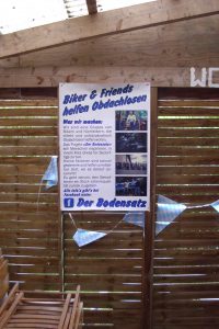 Bei bestem Wetter cruiste ich mit meiner Lady über die B213 in Richtung Party-Lokation. Der Lagannya MC Germany verfügt über ein sehr geiles Club-Gelände. Viel Platz für Zelte, Bikes, Feuerstelle und Equipment, dazu ein absolut Oldschool-mäßiges Clubhaus. Jo, das hat echten 80er-Jahre-Charme. Die Männer waren durch die Bank gut drauf. Da unser Wild Rock Project als Live-Act gebucht wurde, inspizierte ich zunächst einmal die von den Männern top aufbereitete LKW-Bühne.