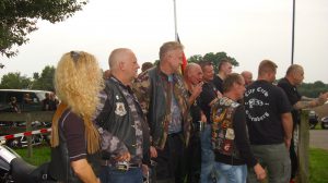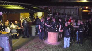 Member Peter hatte es geschnallt und stellte seine Harley genau vor mir ab und ließ den Motor röhren, so daß ich meinen absoluten Lieblingssong mit reichlich Benzingeruch in der Nase performen konnte. Das erzeugte eine tolle Atmosphäre und war der krönende Abschluss für ein Konzert, dass allen auf der Bühne mächtig Spaß gemacht hatte. Da der CD-Koffer nunmehr auch fast leer ist und neu befüllt werden muss, dürfen wir diesen Gig als Erfolg verbuchen. Danach tummelten wir uns noch einige Zeit auf dem Gelände, bevor ich gegen 01.00 Uhr mich mit Lady und Karre auf den Heimweg machte.