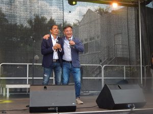 Ohnehin fiel mir im weiteren Verlauf der Veranstaltung auf, dass Schwung entweder intuitiv oder sogar bewusst dafür gesorgt hat, dass niemand ausgegrenzt wird bzw. das Benefiz eine Plattform für viele Communitys ist. Sogar den Regenbogenfarben wurde ein Raum gegeben. Wer den Pottler und Vice President des FRMC Essen kennt weiß, dass er sich stetig für mehr Gemeinsamkeit stark macht. Dieses Event spiegelte das ganz klar wieder, jedenfalls dann, wenn man nicht nur einseitig über gesellschaftliche Belange nachdenkt. Rechts oder Links, groß oder klein, behindert oder nicht, schwul oder hetero, Schwung ist das latte. Das war gelebte Inklusion!