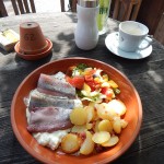 So geschehen am letzten Dienstag. Fairerweise sagte ich Stephan an, dass ich irgendwann am Vormittag eintreffe. Vorher machte ich mich schlau über die Deadline des Breakfast-Angebotes. Ich wollte einfach sehen, ob die auch kurz nach Beendigung der Frühstückszeiten einem hungrigen Biker etwas Leckeres auf den Tisch stellen.