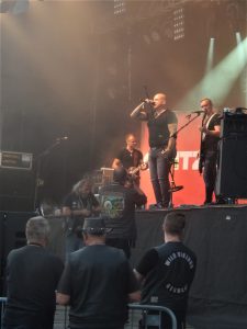 Goitzsche Front markierten nach dem Konzert von Kilminister den Start zum abendlichen Verlauf auf der Mainstage. Und so wie es aussah haben die vier Musiker seit ihrer Gründung anscheinend in kürzester Zeit echt was gerockt, denn bereits vor dem Gig versammelte sich eine größere Gemeinde erwartungsvoll hinter den Absperrungen. Bei mir kam aber ihr Ost-Rock, was das auch immer ist, nicht an. Das Konzert war absolut solide, technisch gibt es nichts zu meckern, aber mir fehlte es an musikalischer Abwechslung. Nach vier Songs hatte ich genug gehört. Sorry, nicht mein Ding.