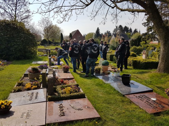 Wie jedes Jahr gedachte der MV Lehrte am 01. Mai mit einem Memorial Run seinen verstorbenen Brüdern. Aufgrund des Todes von Member „Schlomo“ im Herbst letzten Jahres mussten dieses Mal leider schon vier Friedhöfe angefahren werden. An jedem Grab wurd ein Gesteck niedergelegt, denn der MV Lehrte vergisst seine Leute nicht.