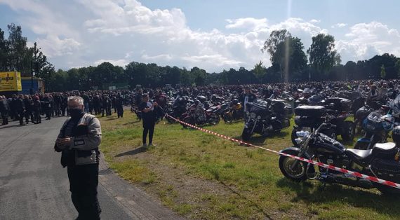 Das Roadblocking und der Ordnerdienst auf dem Gelände hat sehr gut funktioniert. Die Männer waren fit und haben die Vorgaben regide umgesetzt. Ok, der ein oder andere Biker fühlte sich gegängelt, aber insbesondere die Einweisung bei der Wiederankunft in die Parkflächen sollte ja den Auflagen bezüglich der Corona-Restrikionen Rechnung tragen. Das eigene Bike dient als Abstandshalter, so der Gedanke. Die Presse vor Ort hat das positiv bemerkt. Das es trotzdem zu Gruppenbildungen kommt, ist einfach nicht zu verhindern. Insgesamt waren die Teilnehmer aber bemüht, der Vorgabe Rechnung zu tragen.