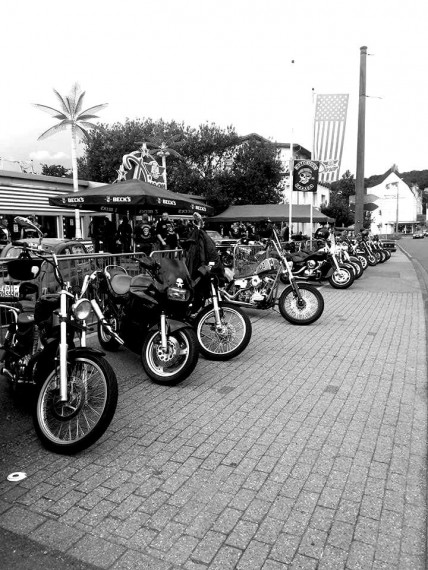 Gleich drei Bands? Wow, die Nomads gehen wohl davon aus, dass der Summer Bash in diesem Jahr eine Steigerung erfährt. Nun, sie sind rege, gut unterwegs, und versuchen auf traditionelle Art ihren Platz in der deutschen Oneperncenter-Szene zu finden. Aktuell sind sie mit 6 Chartern in 4 Bundesländern unterwegs. Ich habe Ozzy bereits auf dem Motorcycle Jamboree kennen gelernt. Im ersten Moment wirkte er auf mich etwas zu jung, um das Amt eines Präsidenten zu bekleiden, aber die Entwicklung des MC lässt darauf schließen, dass er die Männer gut im Griff hat und eine klare Philosophie verfolgt.