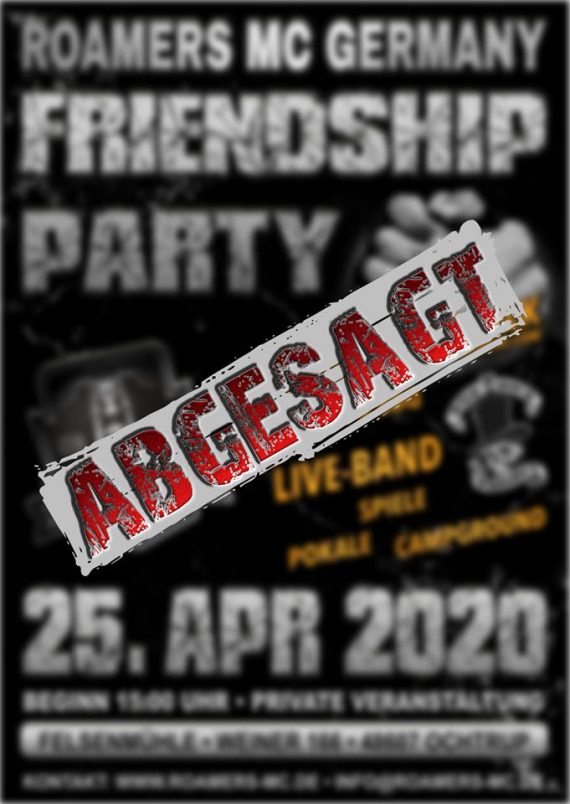 Veröffentlicht am 27. März 2020 auf 681 × 960 in Roamers MC Germany: Absage der Friendship Party!