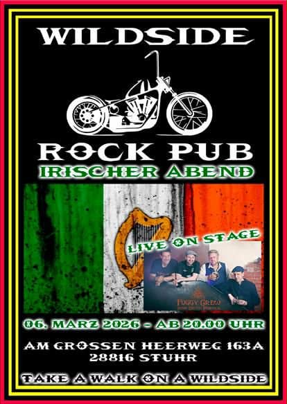 Am 06. März läuft im Rock Pub Wildside die diesjährige Irish Night und wenn die Lokation zu diesem Motto so gut besucht wird, wie in den letzten Jahren auch, dann dürfte das ein sehr bunter und geselliger Abend werden. Die Wahrscheinlichkeit dafür ist hoch, denn die Veranstalter haben erneut die Foggy Crew aus Bremen gebucht.