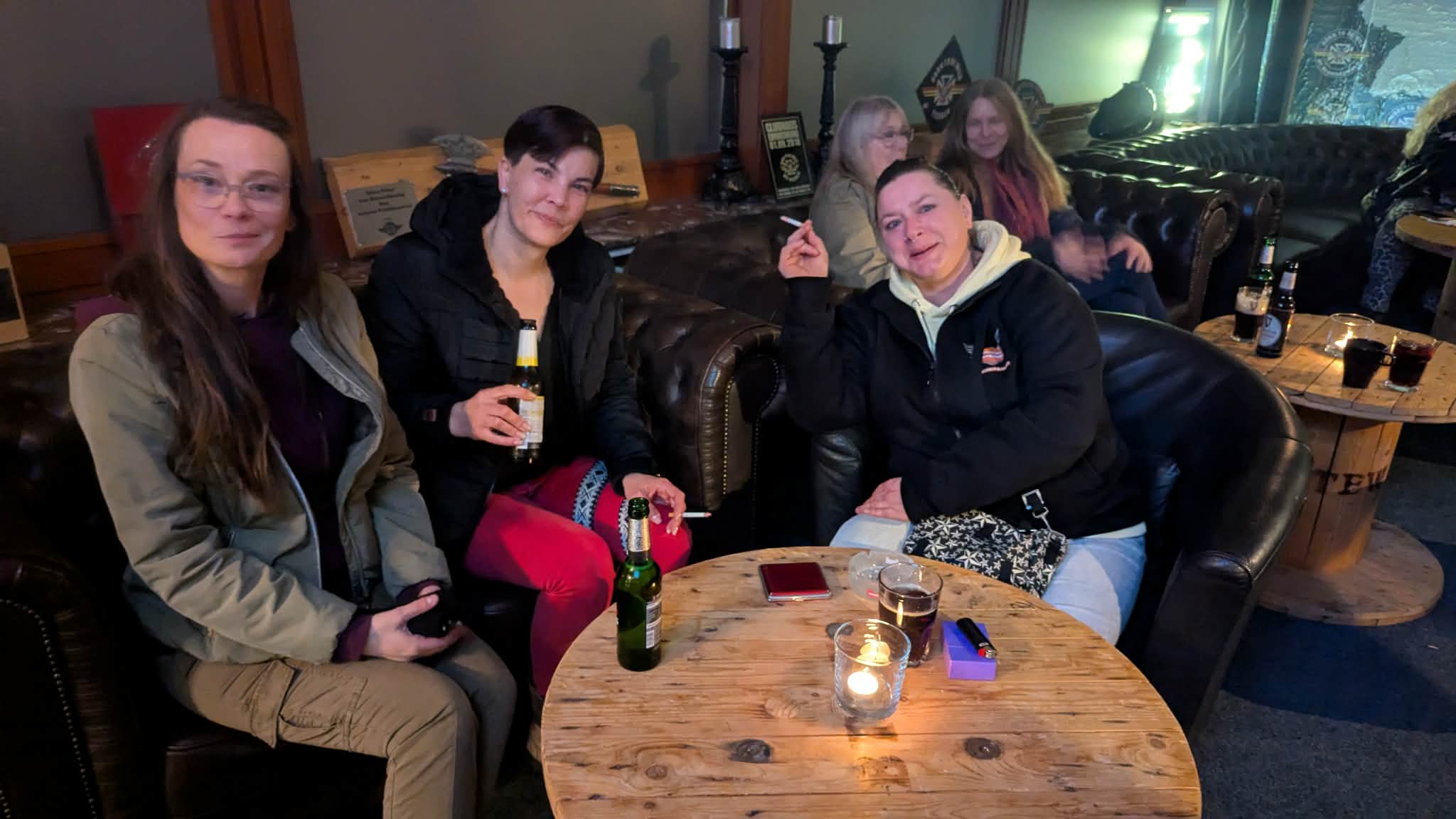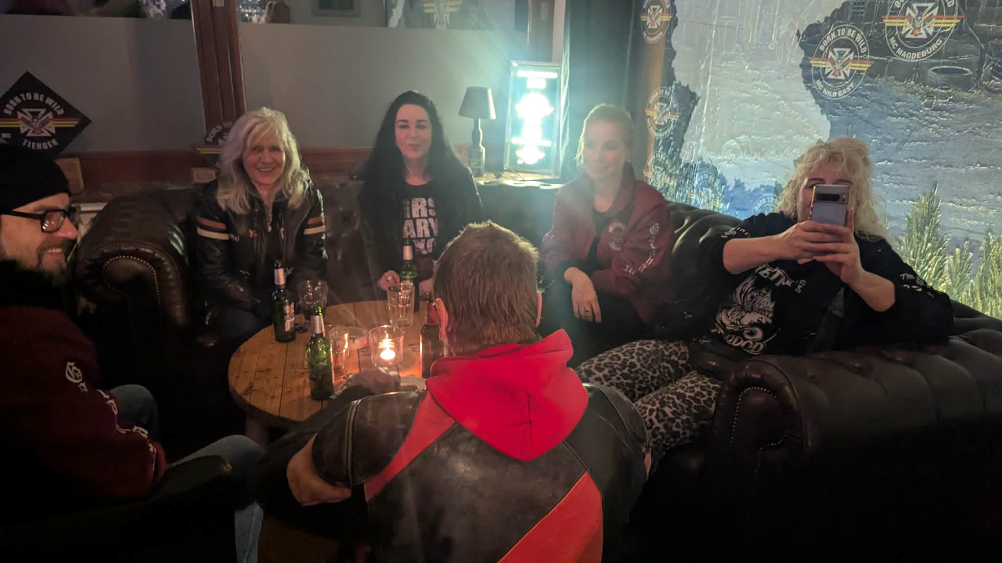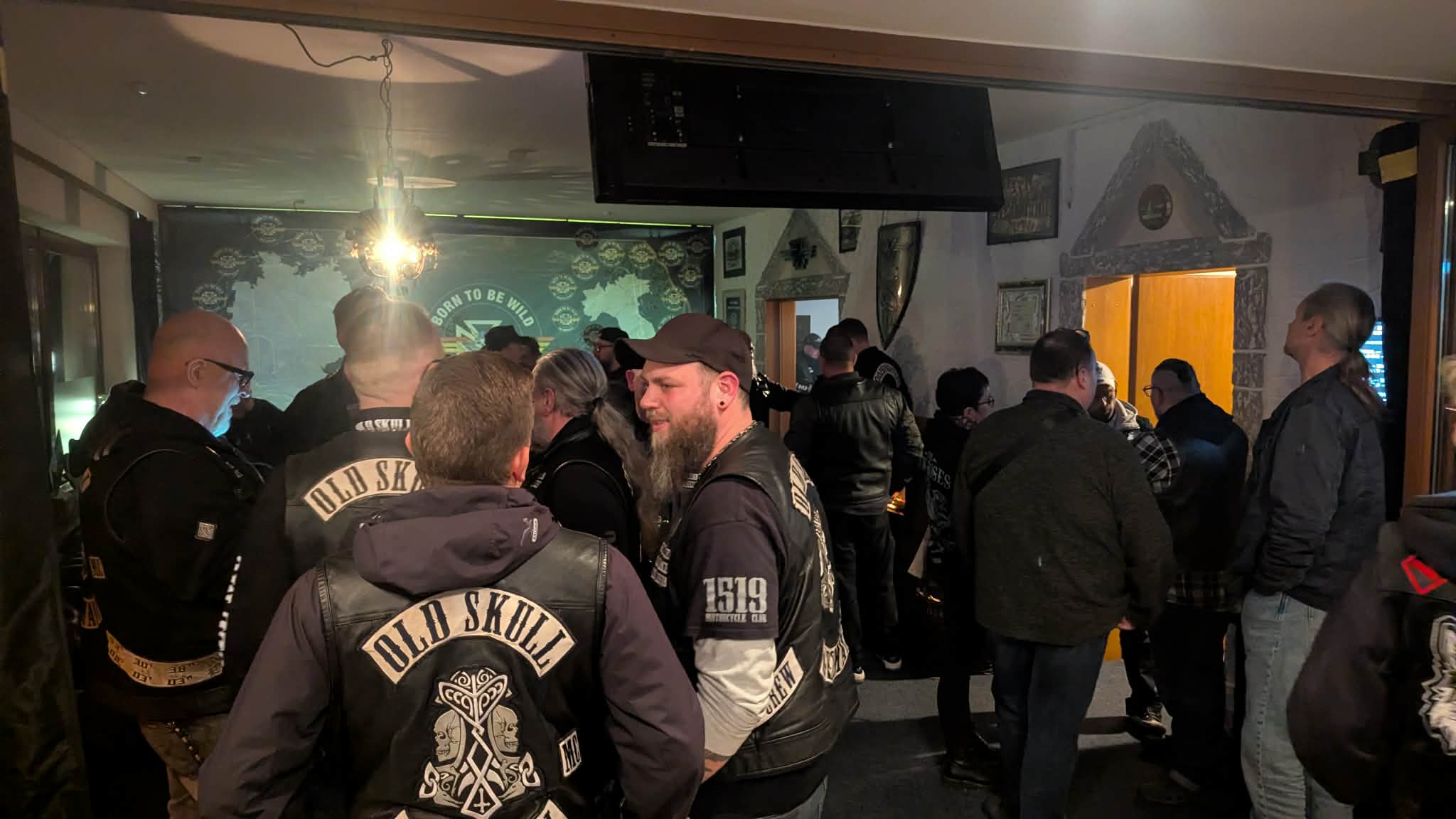 Im Wildside schlugen die ersten Fans der Foggy Crew bereits vor 20.00 Uhr auf. Sie wollten sich einfach die besten Plätze sichern. Damit war der Atrium-Wintergarten bereits zur Hälfte gut gefüllt. Nach 20.00 Uhr ging es dann Schlag auf Schlag. Kuttenträger und Freebiker sowie etliche weibliche Besucher füllten das Wildside zusehends, und zeitweilig kam man kaum noch durch. Genauso hatte man sch das gewünscht.