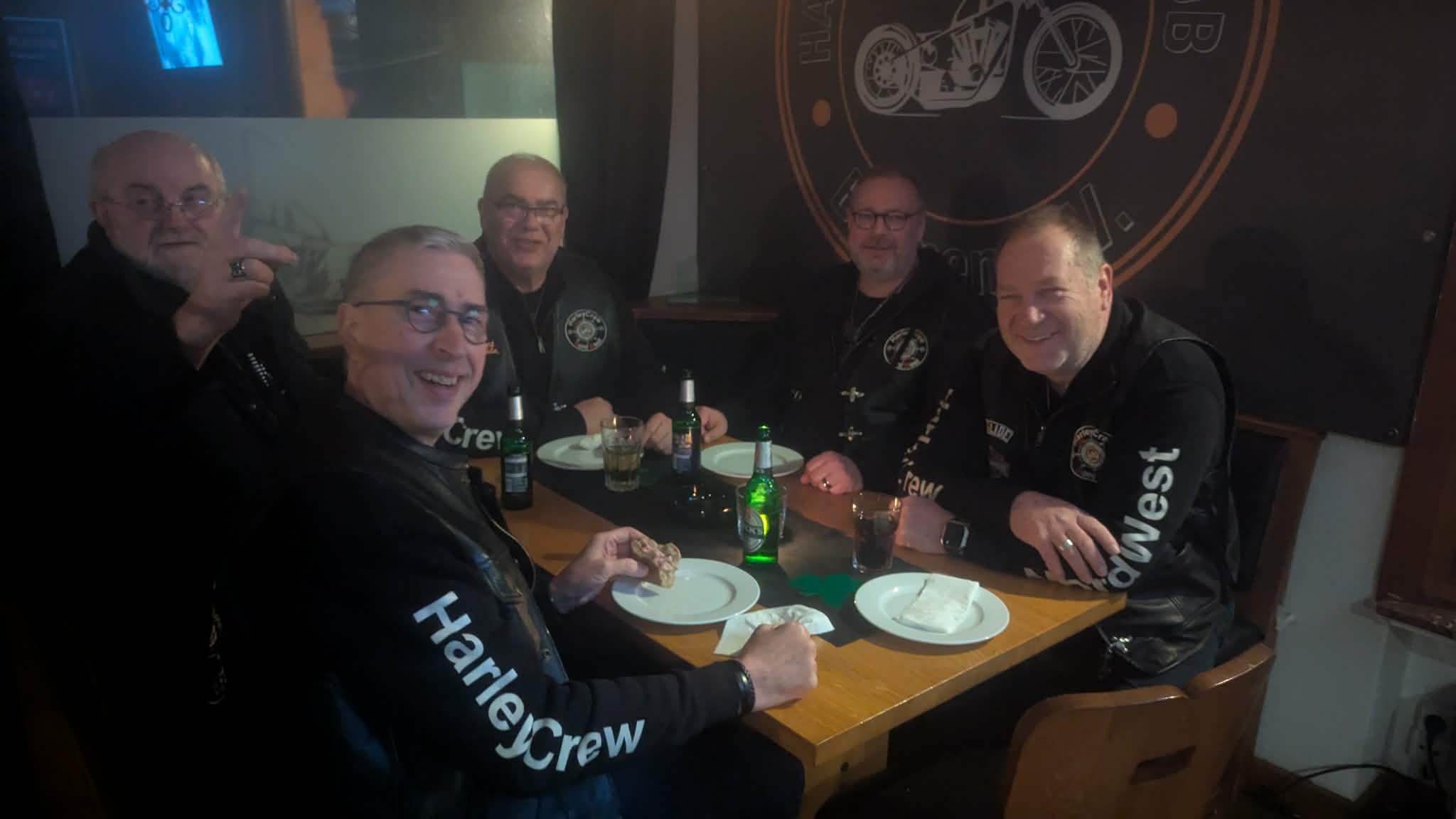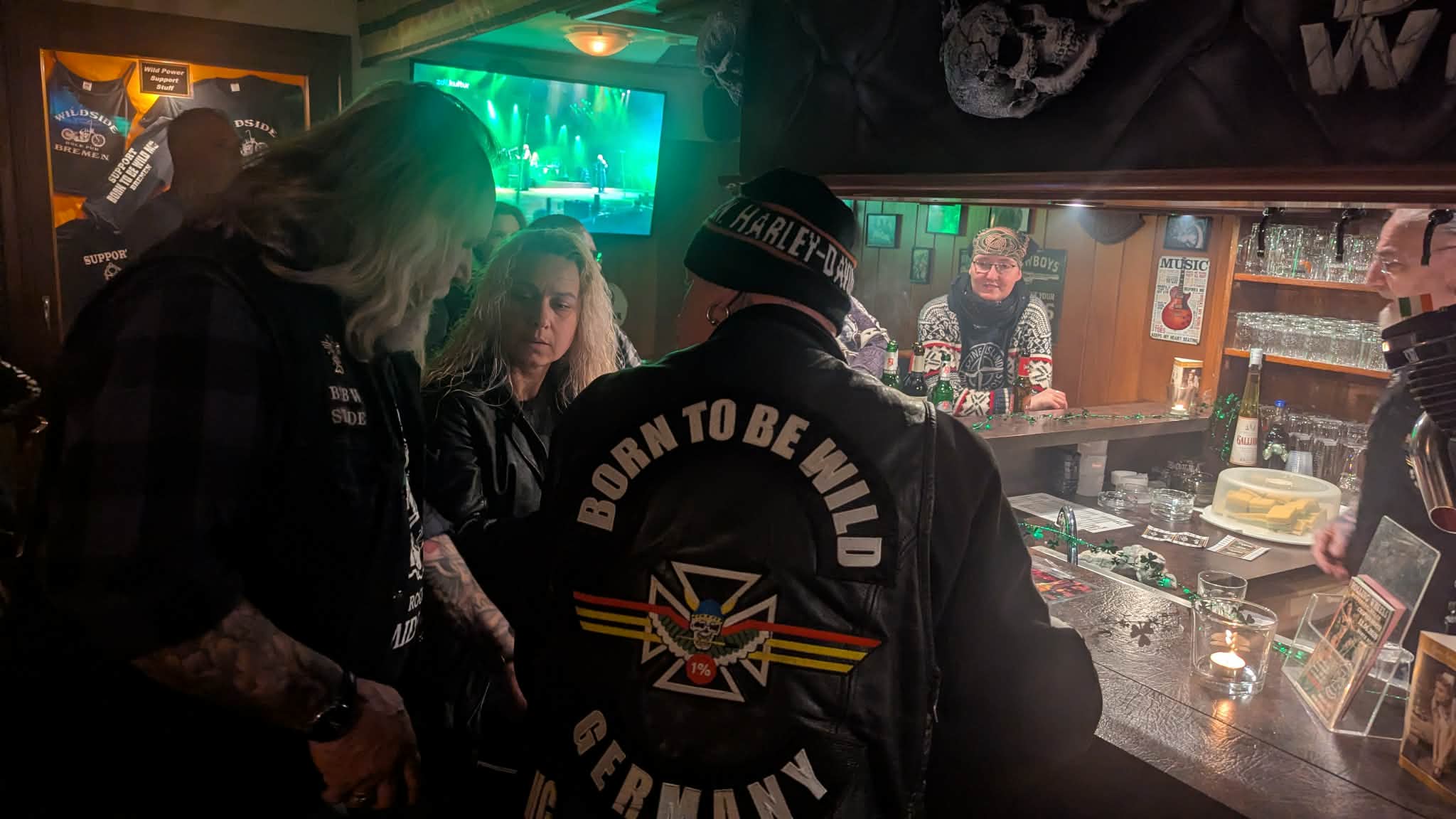 Die Foggy Crew startete um 21.00 Uhr und es dauerte nur wenige Songs, bis die Leute angefixt und stimmungsvoll mitmachten und bereitwillig Applaus gaben, was in einer Rockerbude in dieser Kontinuität eher selten der Fall ist. Der Prager Schinken mit geschmorten Zwiebeln im Roggenbrötchen aus der Küche lief bestens, wurde vielfach gelobt. Ausverkauft!