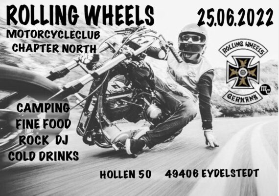 Für den 25. Juni lädt der Rolling Wheels MC North zu seiner ersten Jahresparty ein. Ja, es geht Schlag auf Schlag. Endlich ist wieder richtig was los und die Szenegänger haben nahezu die Qual der Wahl, für welches Event sie sich letztlich entscheiden.