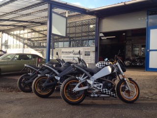 Veröffentlicht am 4. März 2014 auf 320 × 240 in Schrauber-Profil: Motorcycle-Mechanic Raw! Boliden vor der Werkstatt.