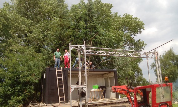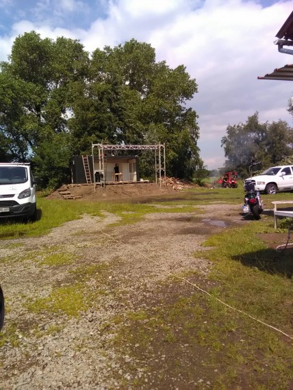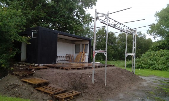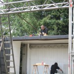 Gar nicht mal so dumm, denn die permanente Ausleihgebühr für Bühnen ist recht üppig, eine feste Bühne kostet einmal Geld und gut. So haben die Kerle geackert und geschuftet, damit das Teil pünktlich fertig wird. Wurde es.