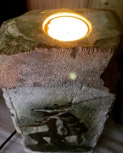 Irina arbeitet vornehmlich mit Brandsteinen. Diese kann sie absolut individuell bearbeiten. Ob für Geburtstage, Jubiläen, als Anniversary-Geschenk, für das Clubhouse, den Einsatz im Garten oder als Erinnerung an bestimmte Ereignisse, ihre Steine können auf jeden Anlass bezogen hergestellt werden. Auch die Verzierung mit zum Beispiel Herzen ist möglich, da diese selber aus Beton gegossen werden. Für besondere Ansprüche kommt Blattgold, Silber oder auch Kupfer zum Einsatz. Selbstverständlich könen auch Fotos in den Stein integriert werden.