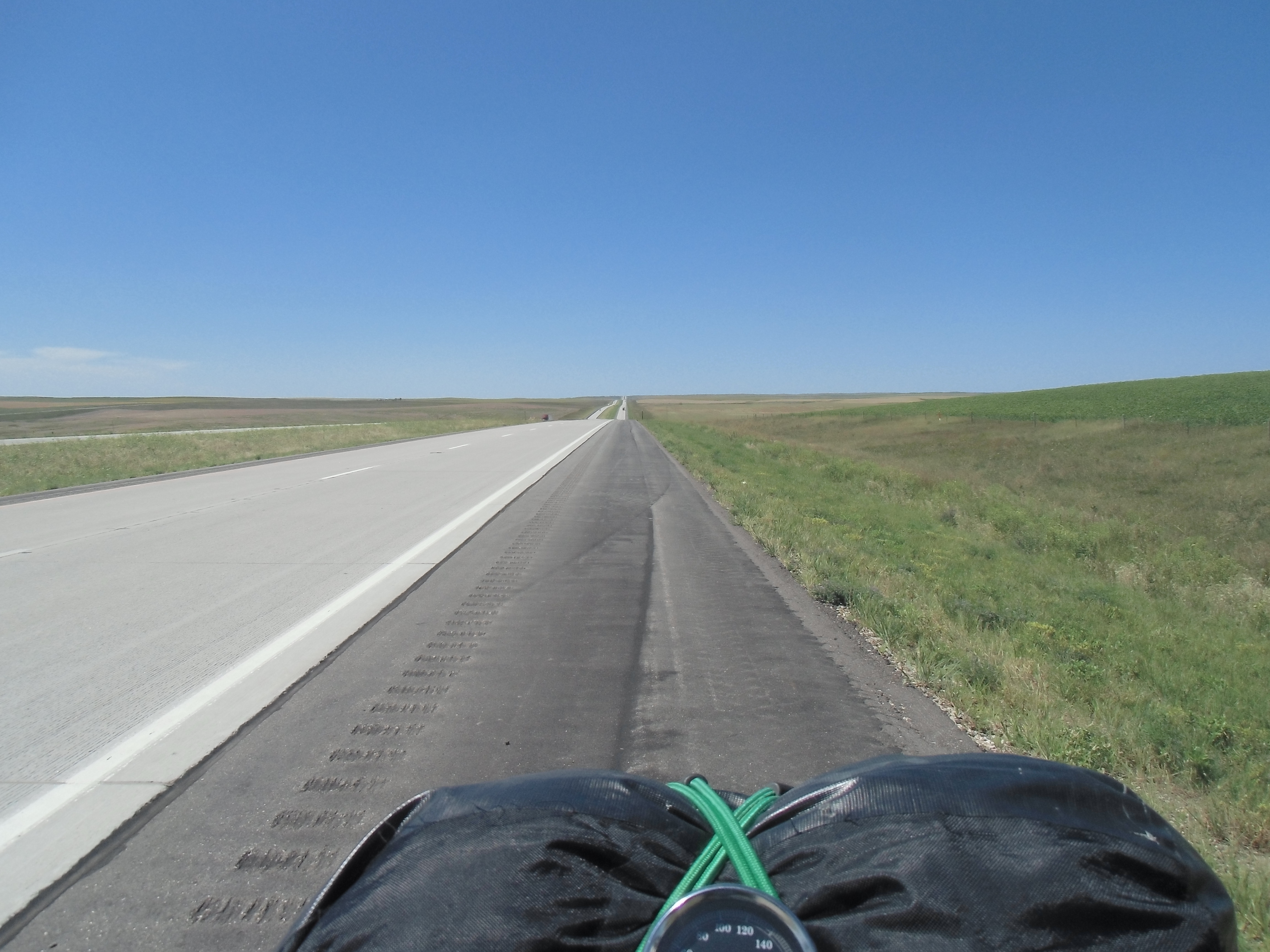 Ich fand am Morgen meinen Helm am Ufer des Missouri, das Handtuch, was um den Tank gebunden, war hing in irgendeinem Busch. Etliche Sachen, auch aus dem Zelt! inklusive Kühltasche , waren über den Platz verstreut. Einige Sat-Schüsseln von Wohnmobilen hatten sich dazugesellt. Zwei Farmer an der Tanke unterhielten sich über fünf Inches Hagel im Korn und einen kurzen Tuochdown,als ich mich wieder auf den Weg machte. Was auch immer das heißen sollte.