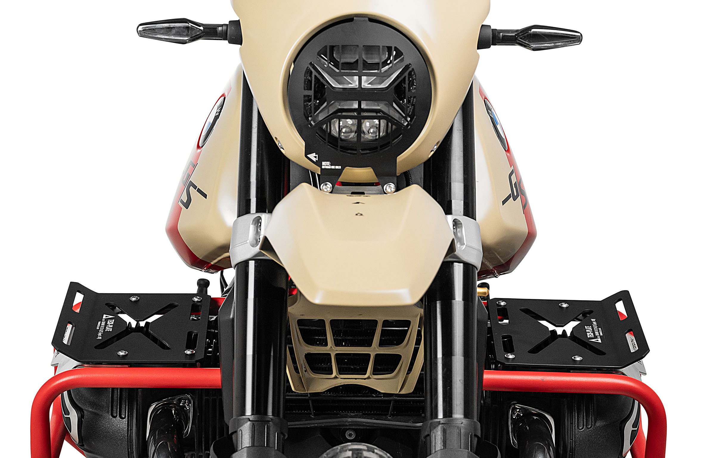 Mit vier Abstützungspunkten am Rahmen und einem durchdachten Layout schützt der Motorsturzbügel wirkungsvoll die Zylinder bei Stürzen oder seitlichem Kontakt mit Hindernissen. Zusätzliche Versteifung sowie die Möglichkeit zur Zubehörmontage bieten die innovativen Tech-Plates, die sich nahtlos ins Erscheinungsbild des robusten Protektors einfügen.