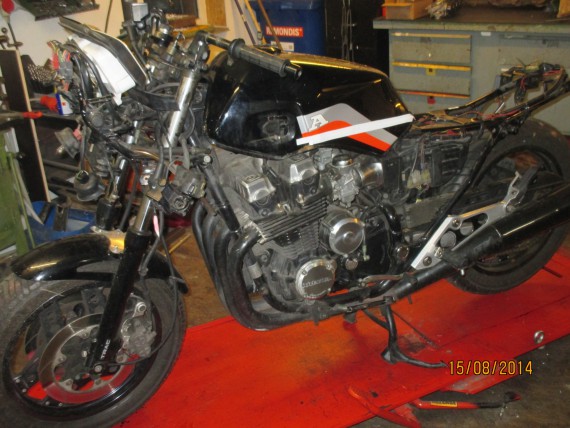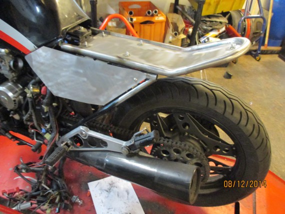 5.Sonstige Arbeiten: Unzählige Hülsen und Stopfen gedreht, Ölkühlerhalter, Kettenschutz aus 1″-Stahlrohr. Gabelbrückenabdeckung aus Stahlblech…….