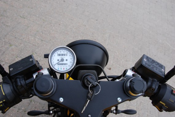 Fremdteile: Kellermann-Blinker, Kellermann-Rücklicht sowie -Blinkerkombination, LSL-Lenkerstummel, Tacho mit Kontroll-Leuchten.