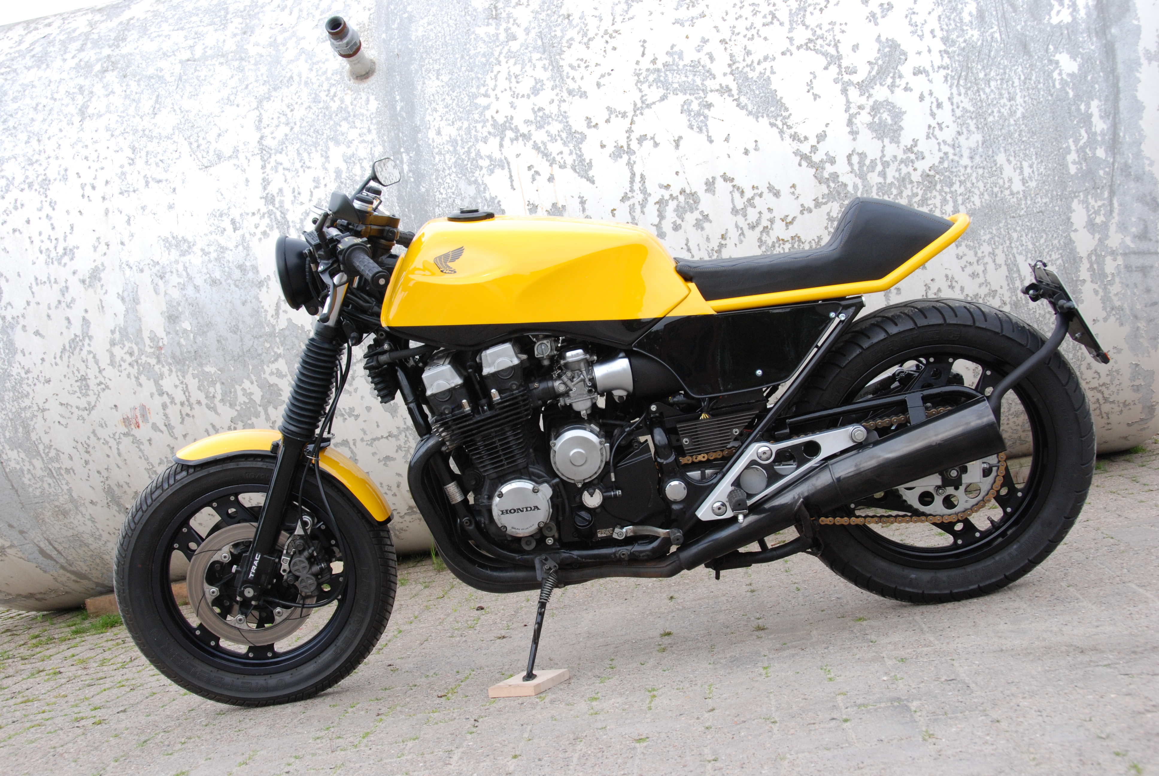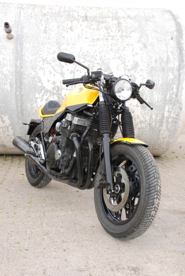 Die 1985 er Honda CBX 750F mit 95 PS wurde Volker im gestrippten Originalzustand auf den Hof gestellt. Die Rad-/Reifenkombination, die Gabel und das Federbein blieben unangetastet.