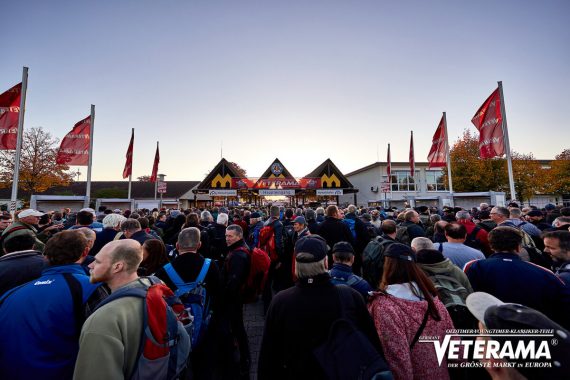Nach einer regnerischen Woche bescherte Petrus der Veterama noch einmal ein goldenes Oktober-Wochenende. Bereits im Mai diesen Jahres waren alle Händlerplätze auf dem 260.000 Quadratmeter großen Veterama-Gelände ausgebucht. Schon am Donnerstag vor der Veterama hatte sich eine kilometerlange Fahrzeugkolonne auf der Zufahrt zu den Einfahrtstoren aufgestellt. Man konnte fast den Eindruck bekommen, dass jeder der Erste auf seinem Veterama-Platz sein wollte.