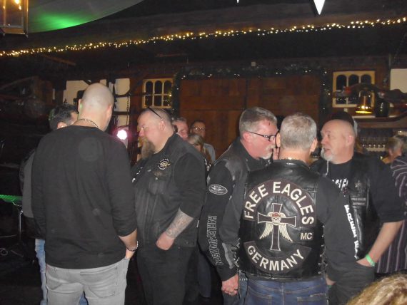 Da die Truppe mit den beiden Membern des Free Eagles MC Germany allerdings in der Region sehr bekannt ist, Sven und Ralle fahren unter den Farben des Chapters Delmenhorst und machen seit langer Zeit Musik, ging ich davon aus, dass es voll wird, zumal die traditionelle Xmas-Party der Delmenhorster Free Eagles wegen der Umbauarbeiten auf dem Clubgelände in diesem Jahr ausfiel und manche Club-Biker den Gig ggf. als Ersatz ansehen könnten.