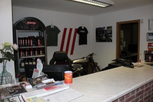 In 2015 wurde die bisherige Werkstatt dann zu klein. Ein Umzug war notwendig. Da die direkt neben MSG liegende Lackiererei zu machte und dieses Gebäude zum Verkauf stand, ergriff Bastian die Chance. Somit ist man seit Anfang 2016 mit einer 800qm großen Werkstatt, Lackierkabine, Leistungsprüfstand, großem Kundenempfang, usw., am jetzigen Standort. Bastian war es wichtig Arbeitsplätze zu schaffen. Als Solist angefangen beschäftigt er aktuell zwei Gesellen, einen Azubi und einen Fahrer für die Motorradtransporte.