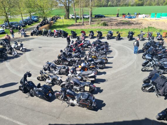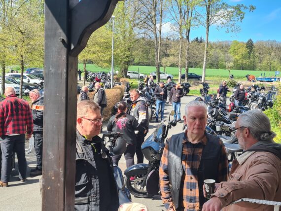 Die Bilder zeigen klar auf, dass der große Parkplatz beim West Side Place gut gefüllt war. Die Biker und Biker Ladys hatten halt Bock auf das Cruisen sowie ein leckeres Frühstück. Da der Ride Out so gut angenommen wurde, war man sogar unter dem Aspekt Safety first mit zwei Packs gestartet.