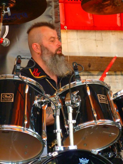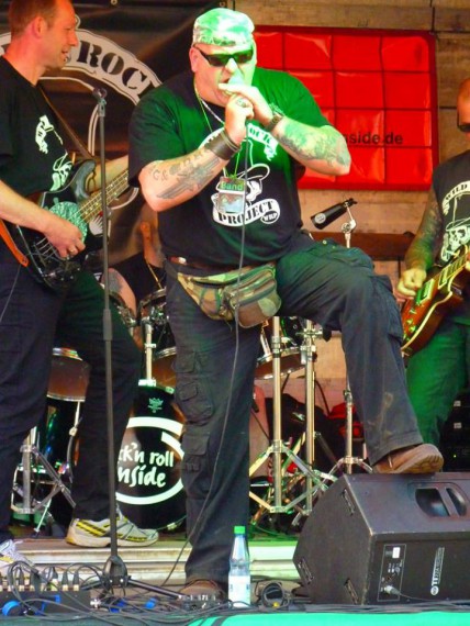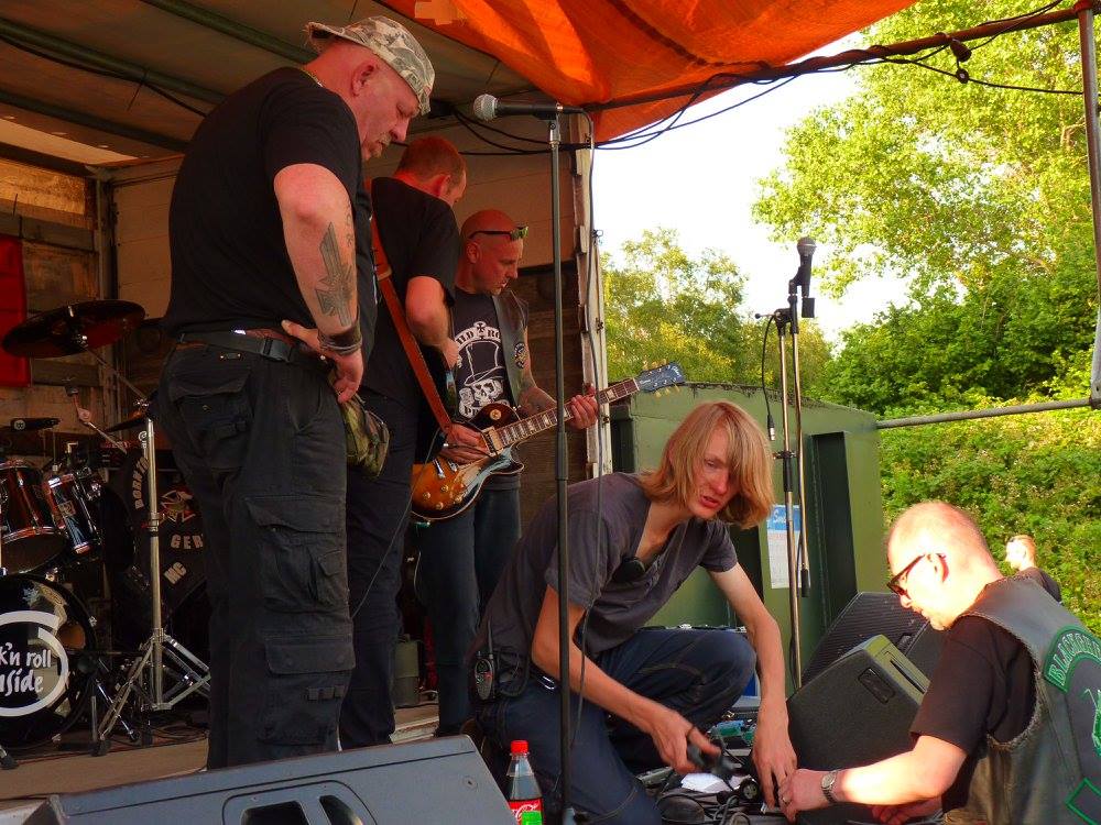 Im Gesamtsound zwischen irgendetwas wie den Onkelz und AC/DC haben die deutschen und englischen Texte im klassischen Rock´n`Roll-Style wohl jedenfalls den Nerv der Zuhörer spontan getroffen. Der Platz war voll und blieb es auch.(die Lücke vor der Bühne ist ja so ein Klassiker, wo man sich fragt, ob es so etwas wie eine Bühnenphobie der Zuschauer gibt). Die Band mag es roh, puritanisch und geradeaus. Mikels markant gespielter Beat liefert gemeinsam mit Shortys dichten Bassläufen eine sehr steady treibende Rhythmussektion, in die sich die klassische Rock`n`Roll-Gitarre vom Hessen und Frontmann Lars`Reibeisenstimme regelrecht reinlegen können.
