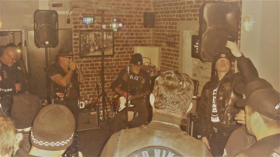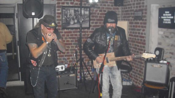 Das Viking Shelter sowie der Vorplatz füllten sich zunehmend, sodass die beiden Vollblut-Musiker pünktlich loslegen konnte. Die Kombination aus Cigarbox und Mundharmonika ist so geil, dass ich dieses Paket allen Clubs wärmstens ans Herz legen kann. Es kommt einfach tierisch gut an. So auch bei den Wild Vikings in Zeven.