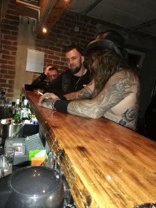 Der Mann scheint eine Maschine zu sein. Hatte er noch am Freitag in Hannover in der Bikers Bar zig Stunden abgerissen, die Besucher begeistert und so gut wie nicht gepennt, haute er am Samstag erneut das volle Brett raus und sang sich so über Stunden in die Herzen der Besucher des Vikings Shelter. Später gesellte sich noch Van Wolfen mit seiner Gitarre dazu und die beiden Vollblutmusiker präsentierten lässige Songs im Tarantino-Style. Einfach Top!