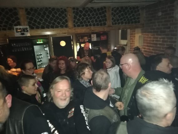 Tja, letztlich hatte der Obelix ein paar Drings mehr im Kessel und schwadronierte mit vermutlich leichtem Lall-Effekt aus seinem Bikerleben. Das ist aber genau das, was so mega viel Spaß bereitet. Szene quatchen, andere steigen ein, hier ein gut bekannter Member des Luzifer MC, und Johhny, der Kfz-Mann aus Fishtown, der sich die Kante gab. Grins…..In Stade zur Winterparty Ende Januar trifft man sich wieder, so der Tenor.